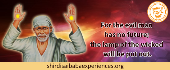 मैंने उन सभी चीज़ों का पालन करना शुरू कर दिया जो साईंबाबा ने हमें सिखाईं थी। मैंने अपनी सभी समस्याओं को साईंबाबा के सामने आत्मसमर्पण कर दिया और उनसे प्रार्थना करी कि वे मेरे मन को हर तरह के भय, क्रोध, अहंकार, निराशा और सभी नकारात्मक भावनाओं से मुक्त रखें। साईंबाबा की कृपा के कारण मैं अपने मन को तनाव और भय से मुक्त कर पाया। अब साई सतचरित्र पुस्तक पढ़ते हुए मैं वही सब सीख रहा हूँ, जो साईबाबा ने बताया और सिखाया था।